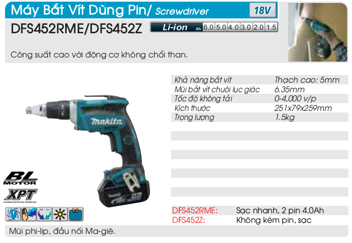 Máy vặn vít dùng pin Makita DFS452Z 18V